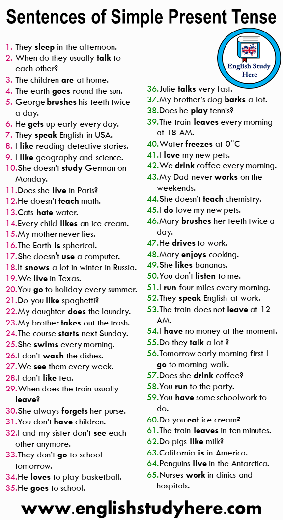 Simak penjelasan artinya, rumus kalimat, serta contoh kalimatnya . Berikut pengertian, penggunaan, fungsi, rumus, dan contoh simple present tense dalam bahasa inggris. 30 contoh kalimat simple present tense dalam bahasa inggris beserta artinya lengkap di kupas tuntas hanya di ibi. Simple present tense merupakan jenis tenses yang pertama . Dalam bahasa inggris present tense atau simple present tense digunakan untuk.